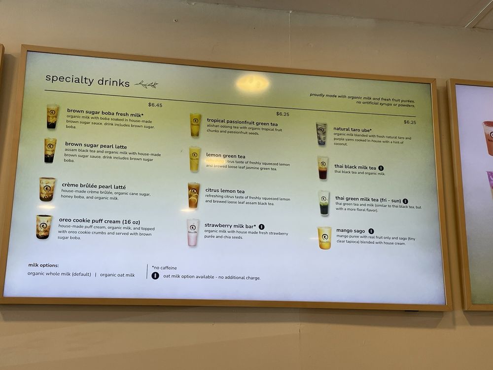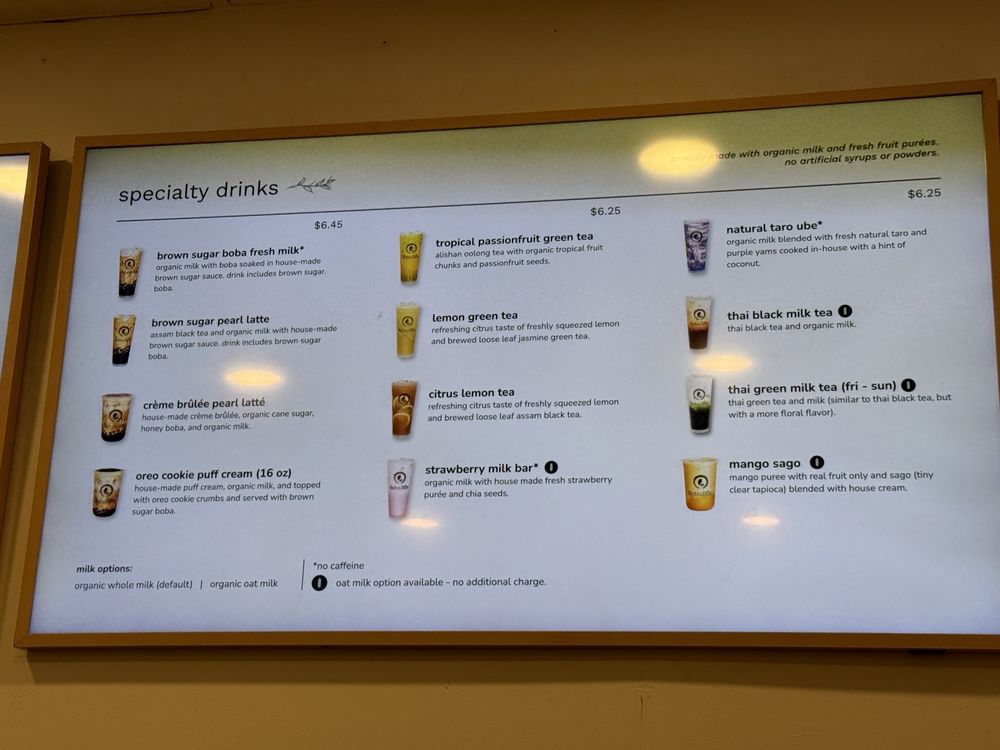 Boba Bliss, located in Dublin, CA, has garnered rave reviews from customers for its impressive menu of boba drinks. Customers praise the freshness of the drinks and the efficient service provided by the friendly staff. With options like Thai green tea and assam milk tea with boba, Boba Bliss offers a variety of flavors to cater to different preferences. Reviewers highlight the chewy texture of the boba, making it a standout feature of their drinks. The ambiance may be plain, but the lively atmosphere from customers adds to the overall experience. Whether you're a fan of traditional milk teas or looking to try something new like mango matcha latte, Boba Bliss has something for everyone. Don't miss out on this go-to spot in the Tri Valley for satisfying your boba cravings.